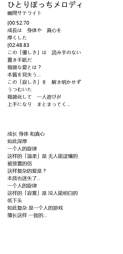 | [01:17.95][02:48.83] | ひとりぼっちメロディ |