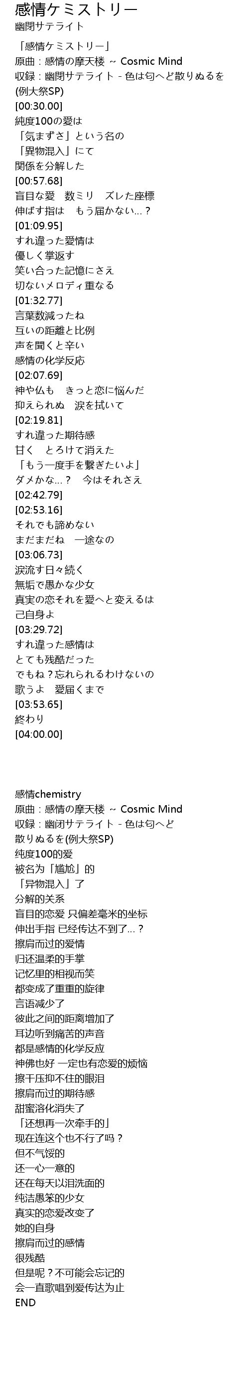 | [00:20.00] | 原曲:感情の摩天楼 ~ Cosmic Mind |
