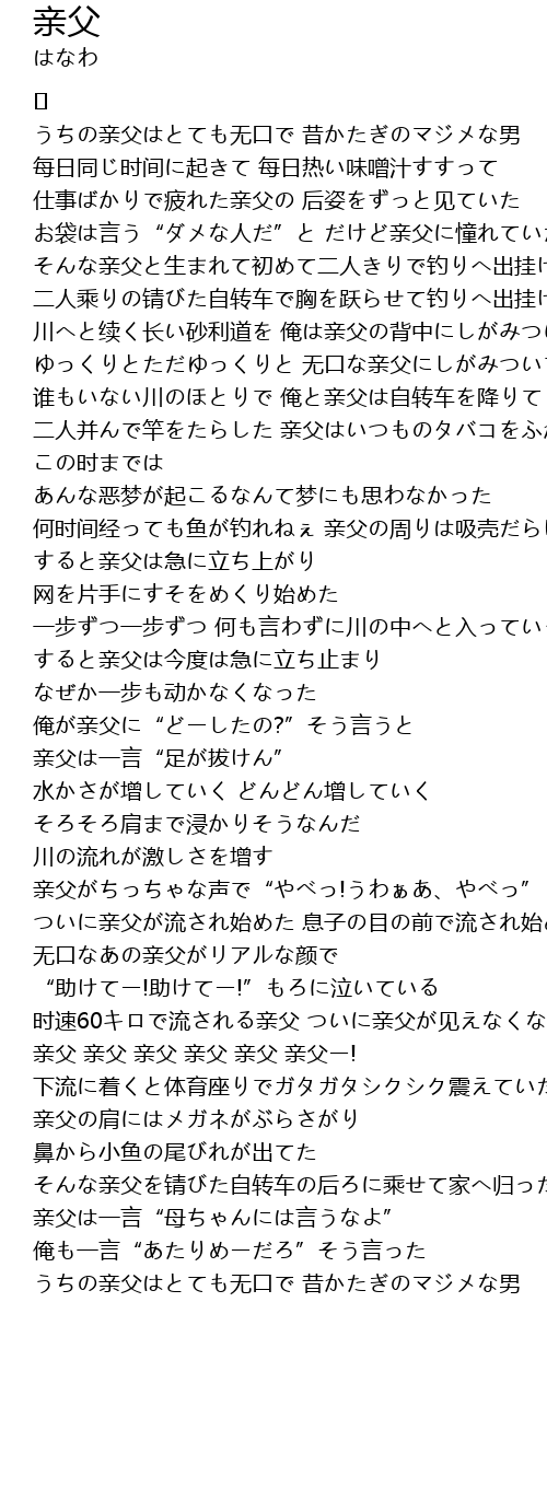 | 谁もいない川のほとりで 俺と亲父は自转车を降りて | |