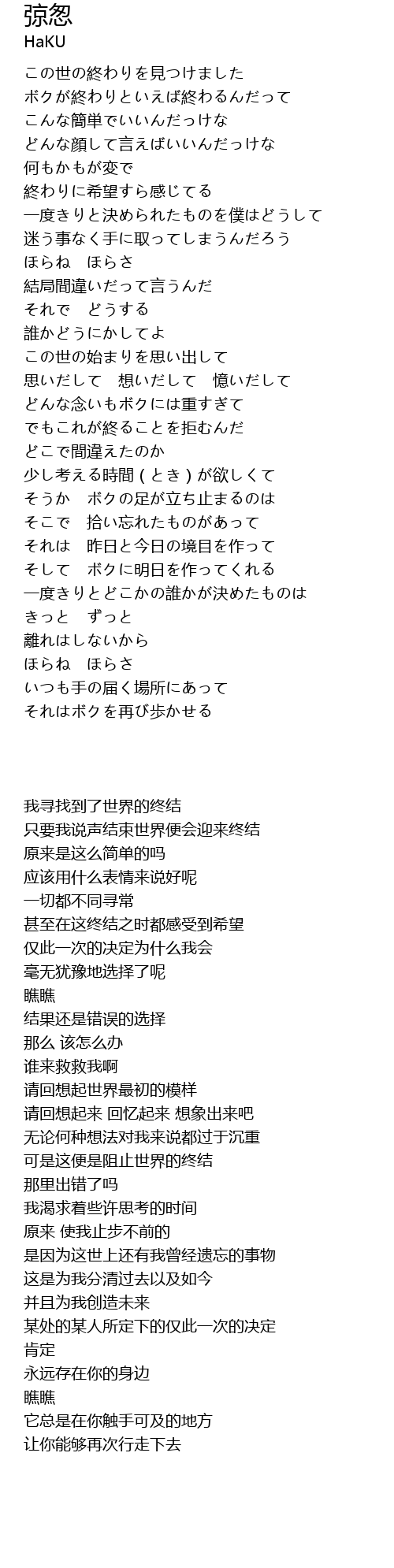 | [00:27.67] | この世の終わりを見つけました |