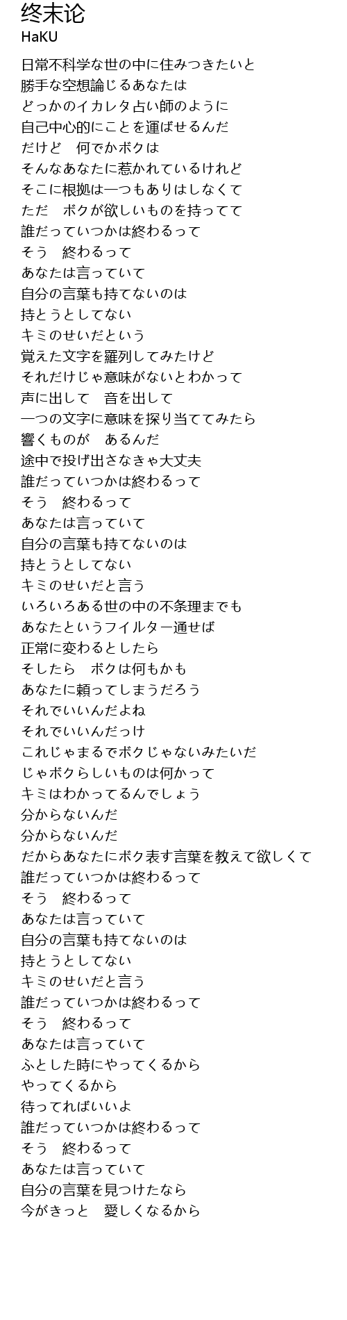 | [00:47.22] | 日常不科学な世の中に住みつきたいと |