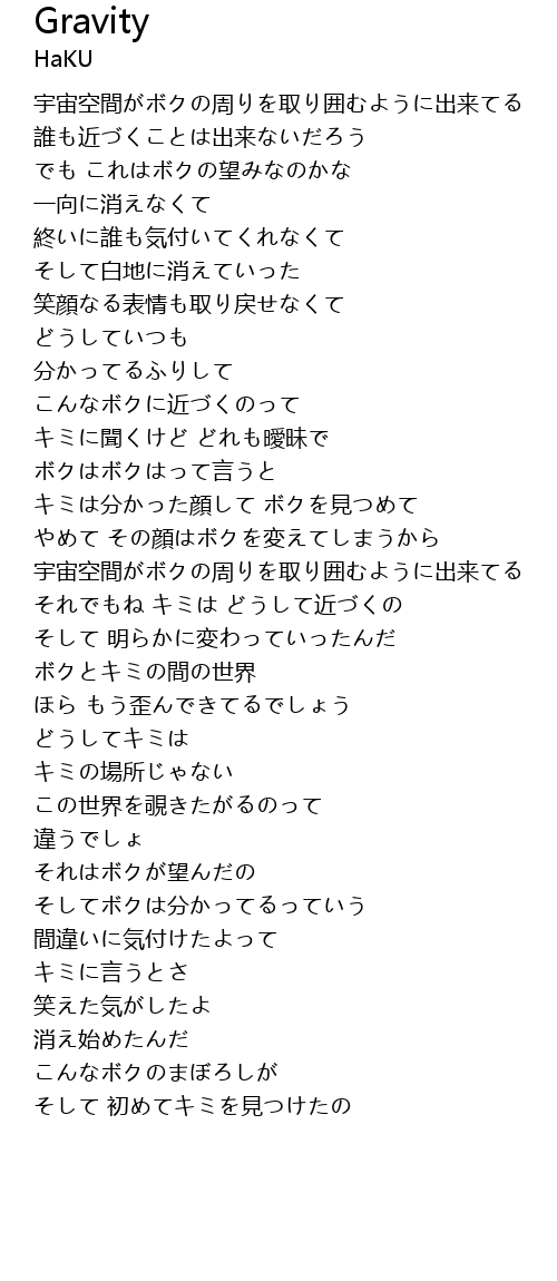 | [01:39.20] | 宇宙空間がボクの周りを取り囲むように出来てる |