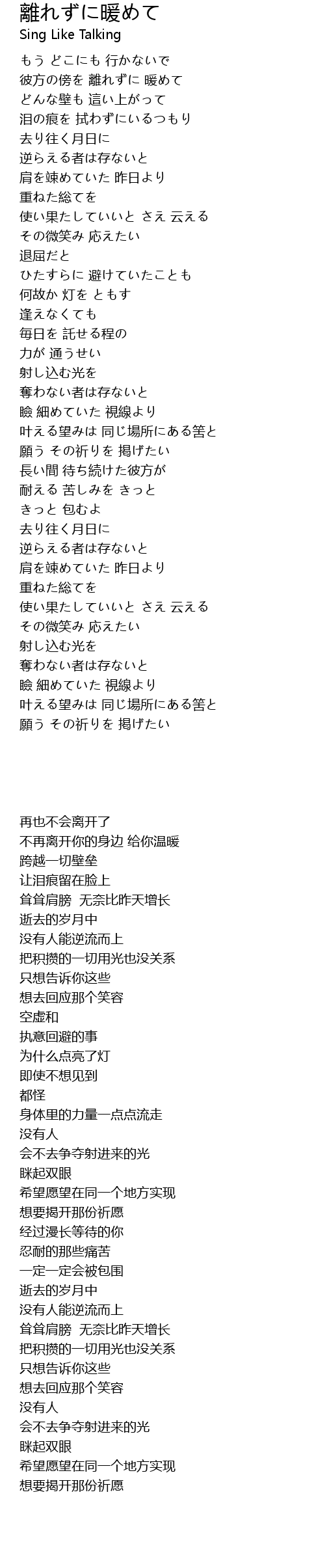 | Song | 離れずに暖めて |