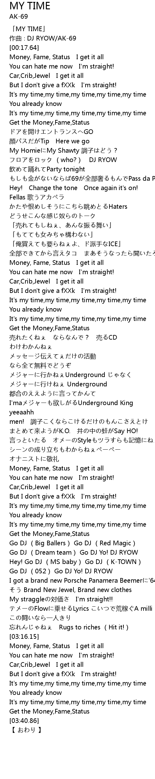 | [03:35.43] | It's my time,my time,my time,my time,my time |