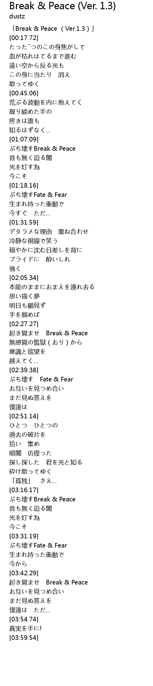 | [00:01.72] | 「Break & Peace (Ver.1.3)」 |