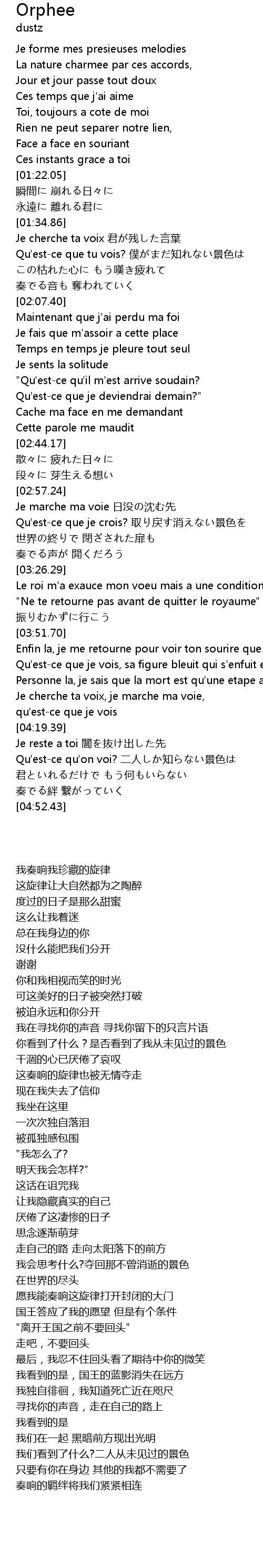 | [01:35.11] | Je cherche ta voix 君が残した言葉 |