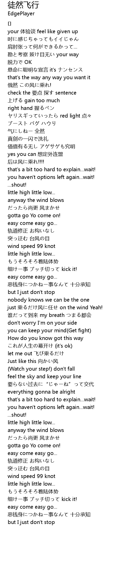 | just 乘るだけ风に任せ on the wind Yeah! | |