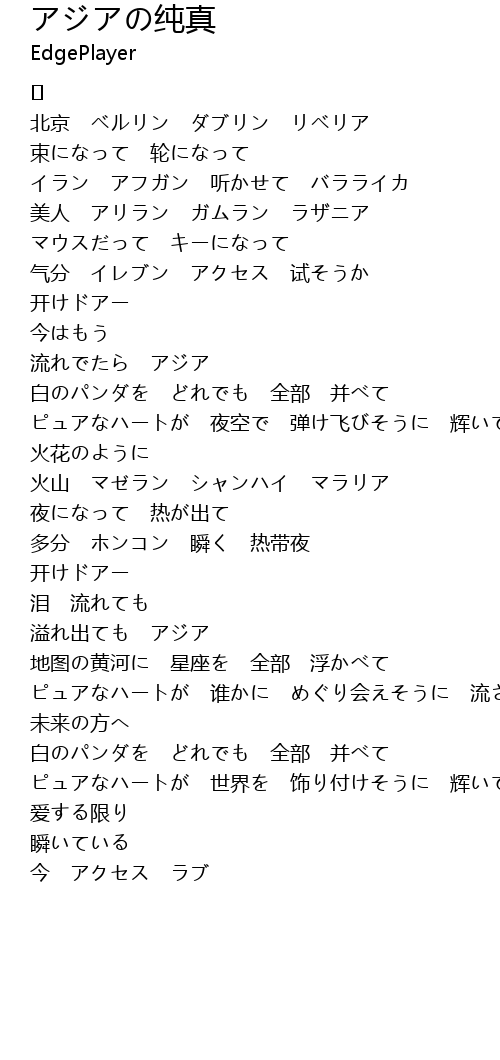 | Song | アジアの纯真 |