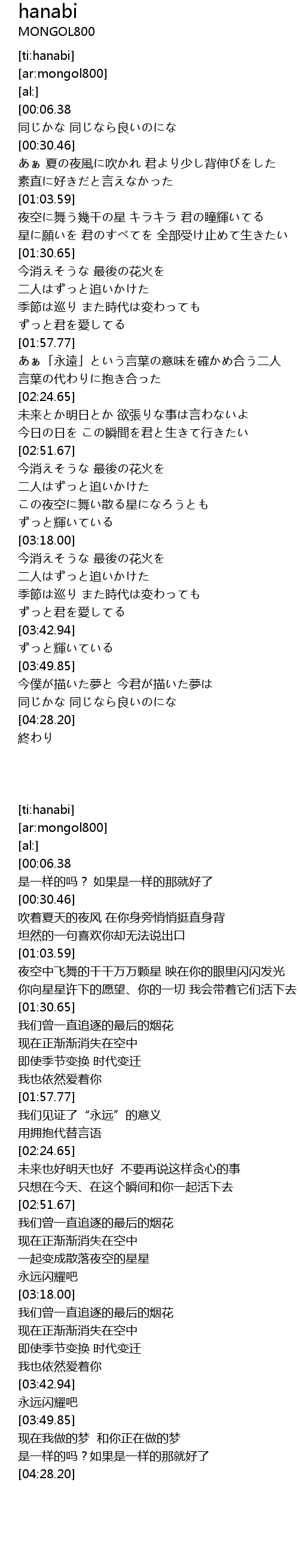 | [04:15.10] | 同じかな 同じなら良いのにな |