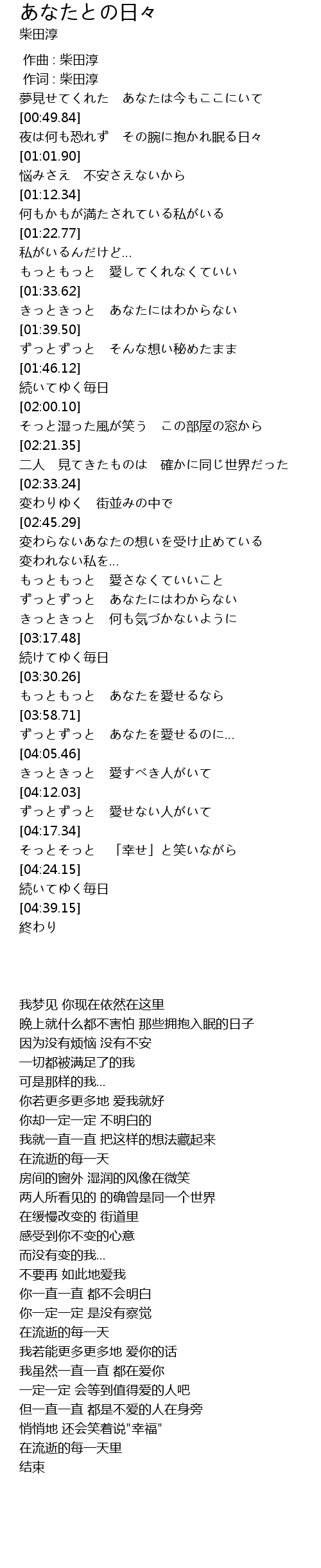 | [03:53.51] | もっともっと あなたを愛せるなら |