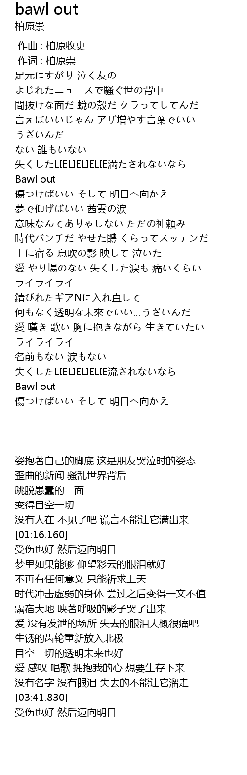 | [03:41.830] | Bawl out |