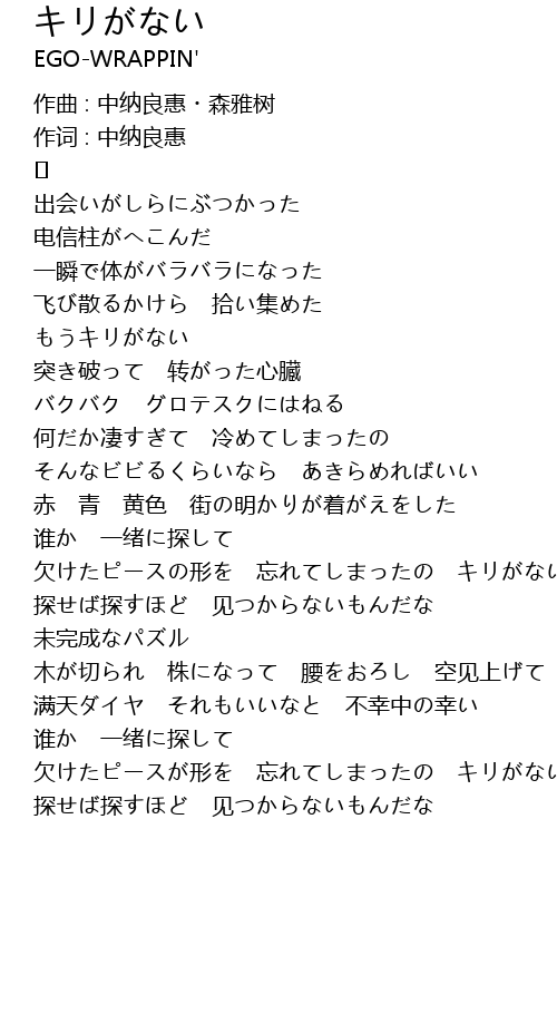 | 欠けたピースが形を 忘れてしまったの キリがない | |