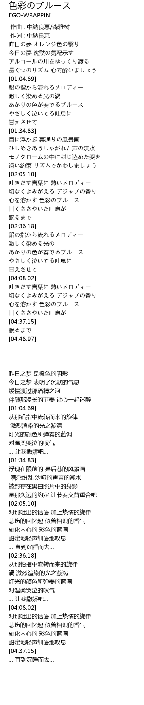| [04:23.36] | 心を溶かす 色彩のブルース |