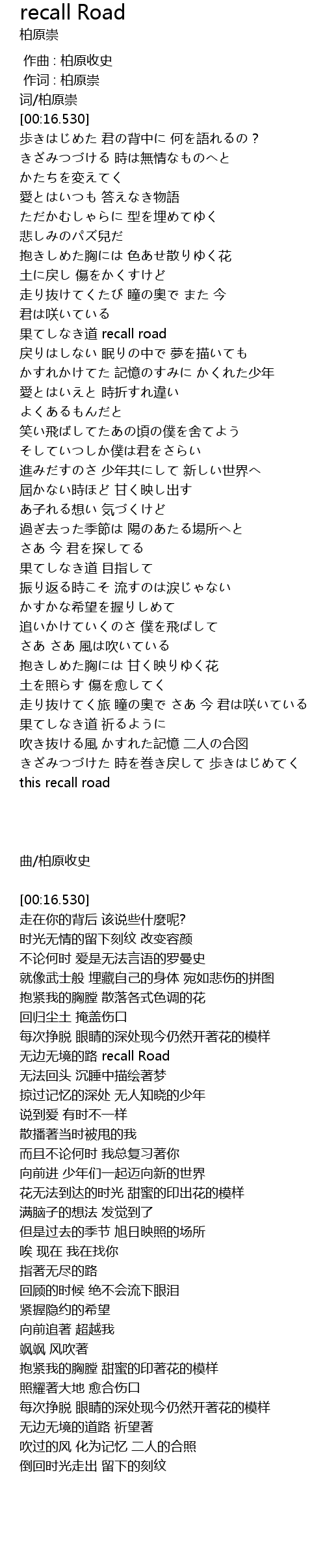| [00:00.170] | 作词 : 柏原崇 |