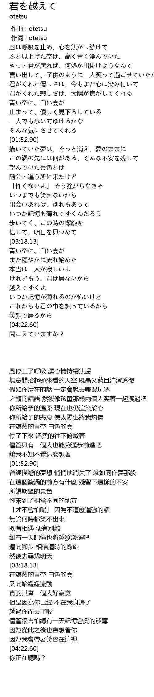 | [00:00.00] | zuo qu : otetsu |