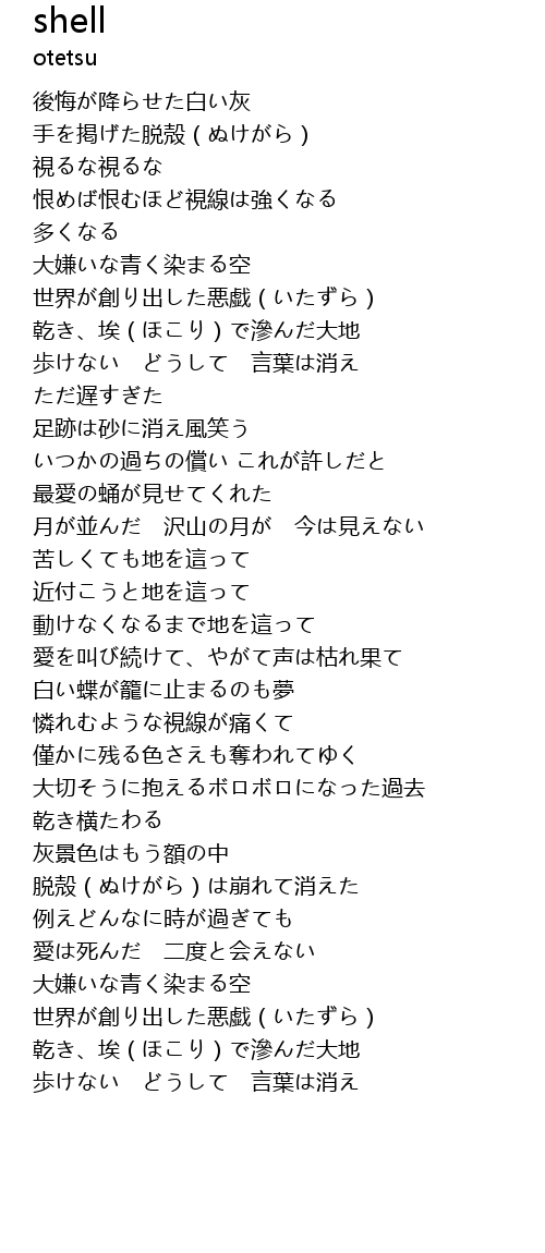| [03:28.64] | 脱殻(ぬけがら)は崩れて消えた |