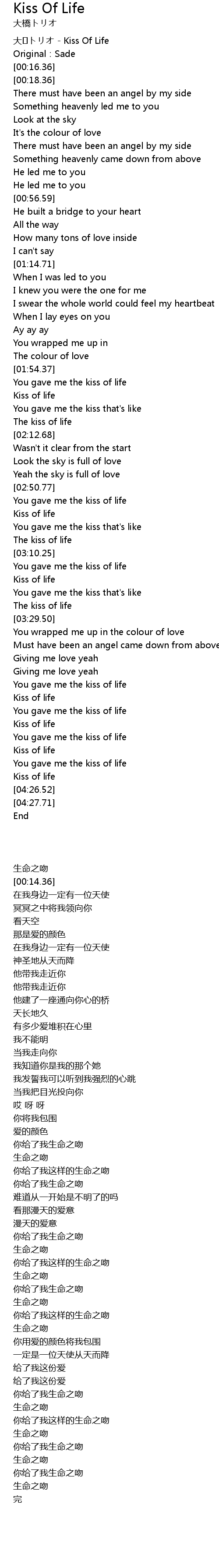 | [04:14.17] | Kiss of life |