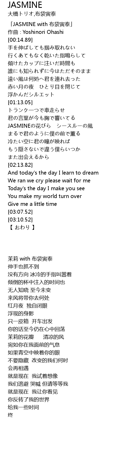 | [00:01.89] | JASMINE with bu dai yin tai |