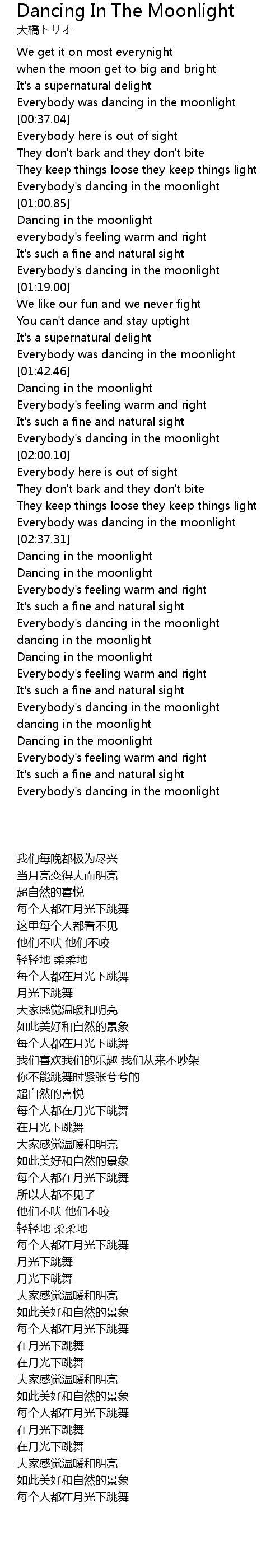 | [01:36.88] | Everybody was dancing in the moonlight |