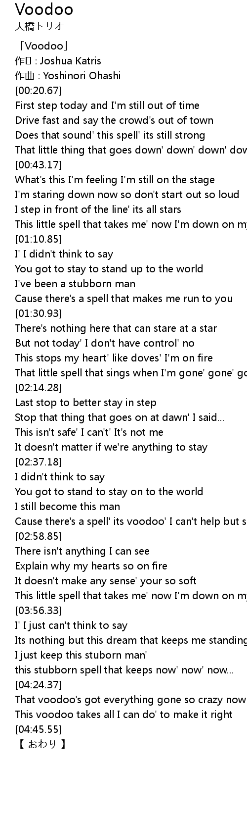 | [04:35.73] | That voodoo's got everything gone so crazy now |