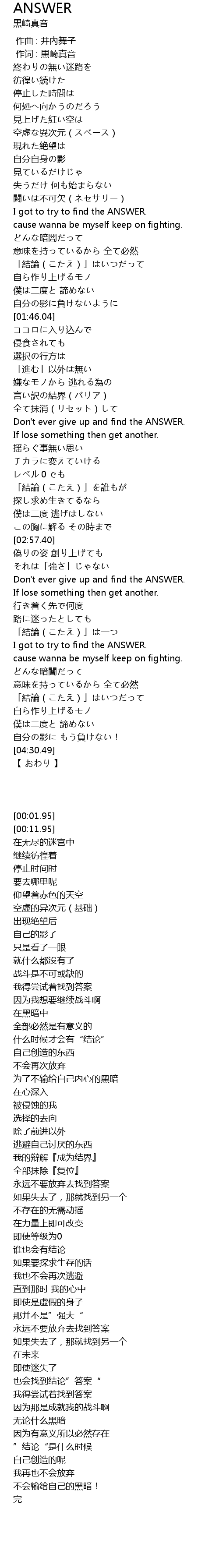 | [02:20.35] | Don't ever give up and find the ANSWER. |