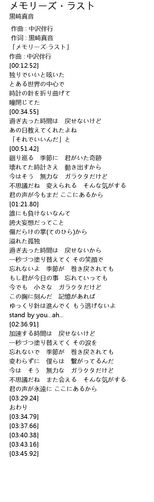 | [00:00.00] | 「メモリーズ·ラスト」 |