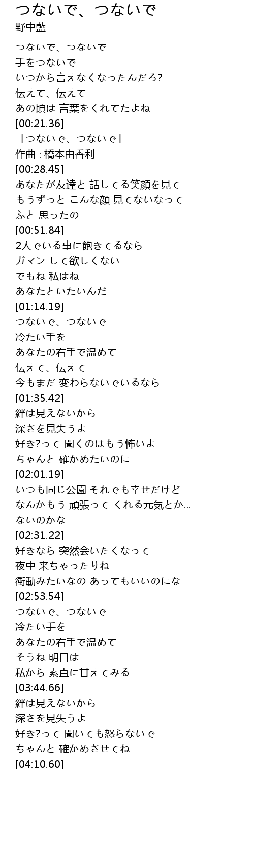| [00:00.16] | つないで、つないで |