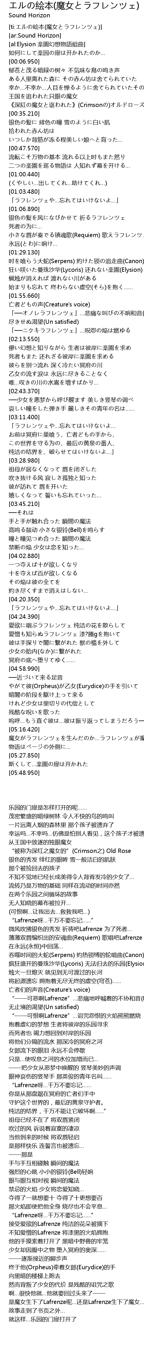| [05:07.360] | けれど少女は里切りの代偿として 残酷な呪いを歌った |