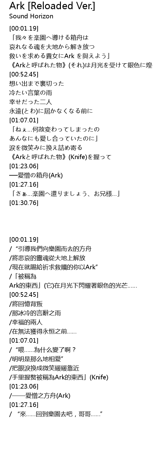 | [01:23.31] | ──愛憎の箱舟(Ark) |