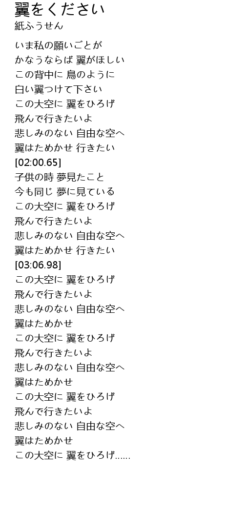 | [01:40.12] | 悲しみのない 自由な空へ |