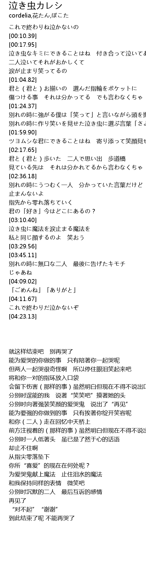 | [04:09.53] | 「ごめんね」「ありがと」 |