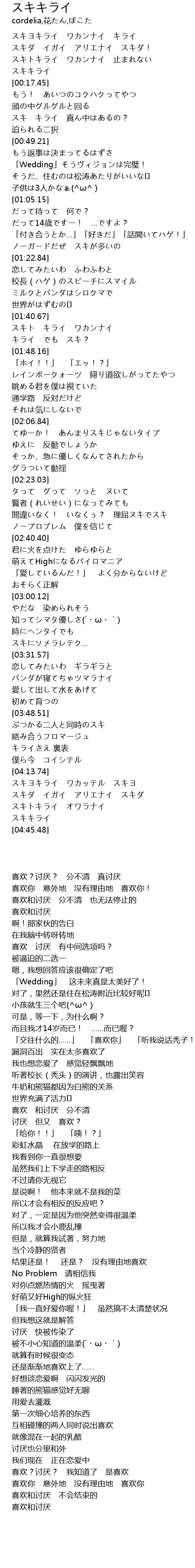 スキヨキライ ワカンナイ キライ |