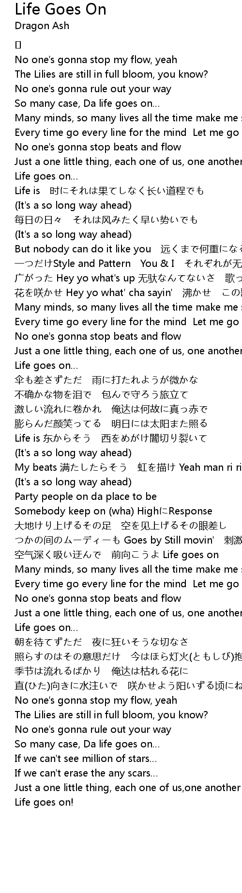 | 空气深く吸い迂んで 前向こうよ Life goes on | |