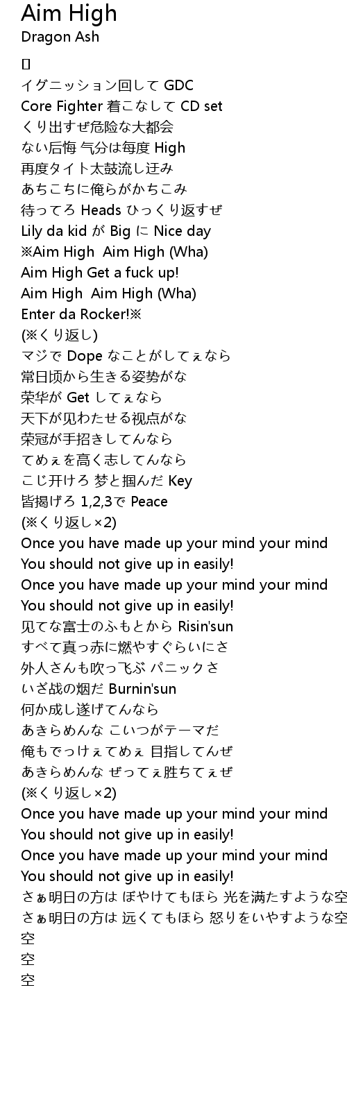 | さぁ明日の方は ぼやけてもほら 光を满たすような空 | |