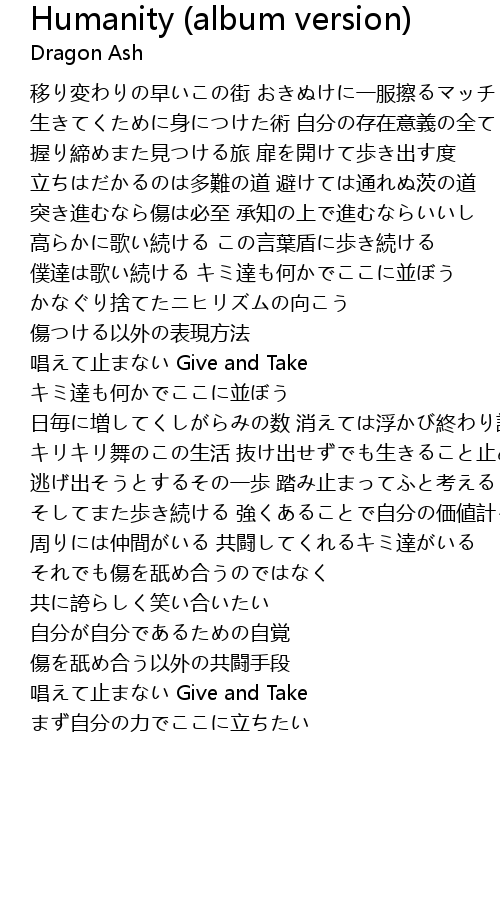 | 高らかに歌い続ける この言葉盾に歩き続ける | |