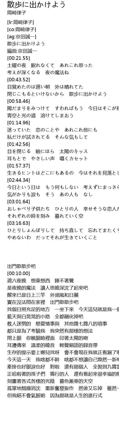 | [00:00.00] | 散歩に出かけよう |