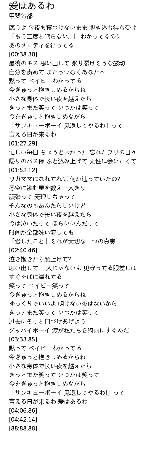| [04:04.22] | 言える日が来るわ 爱はあるわ |