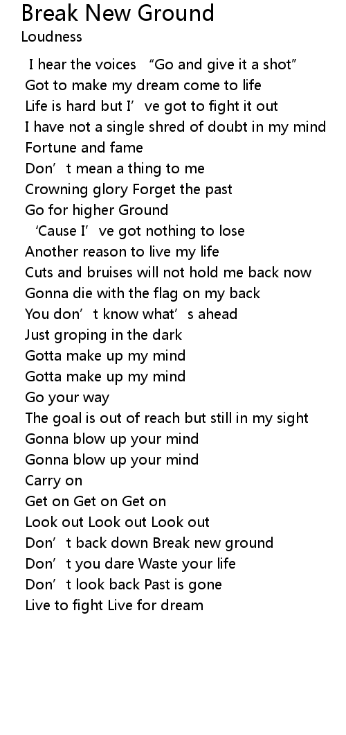 | Don' t back down Break new ground | |