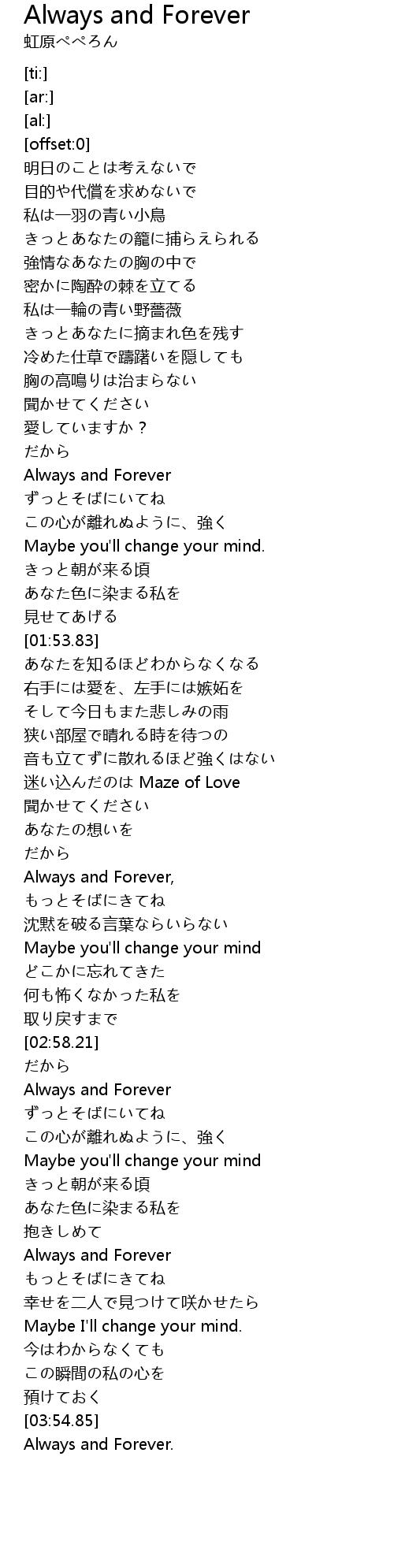 | [03:17.42] | Always and Forever |