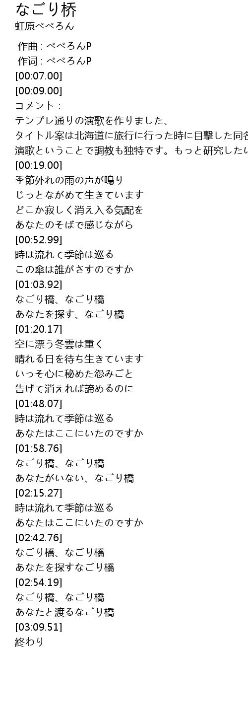 | [00:13.00] | テンプレ通りの演歌を作りました、 |