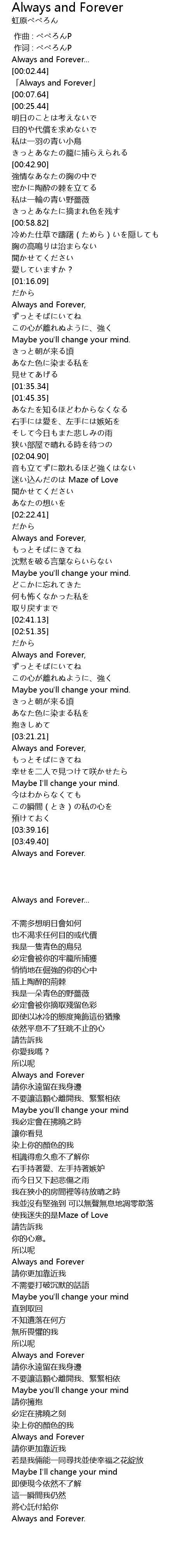 | [02:23.32] | Always and Forever, |