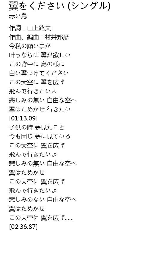 | [00:13.89] | 叶うならば 翼が欲しい |
