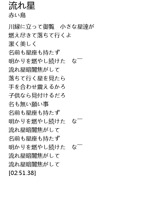 | [00:13.58] | 川縁に立って御覧 小さな星達が |