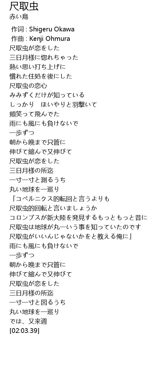 | [01:47.57] | 尺取虫が恋をした |