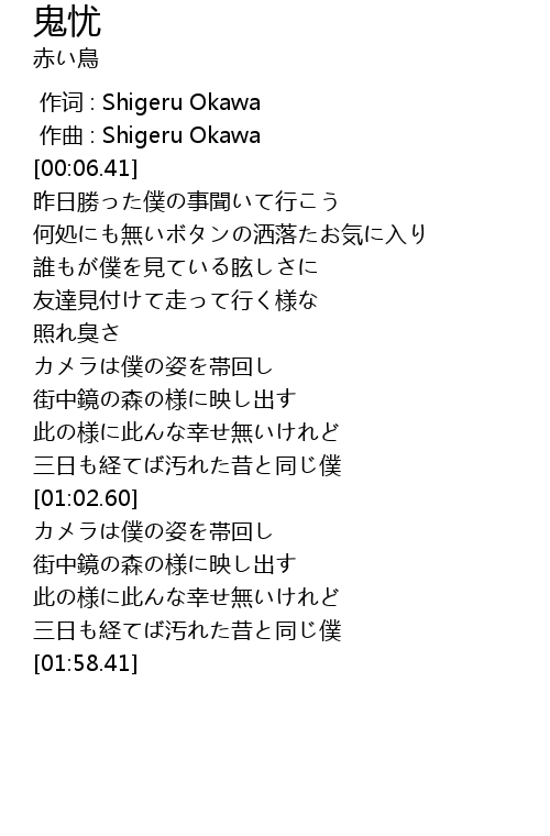 | [00:01.000] | zuo qu : Shigeru Okawa |
