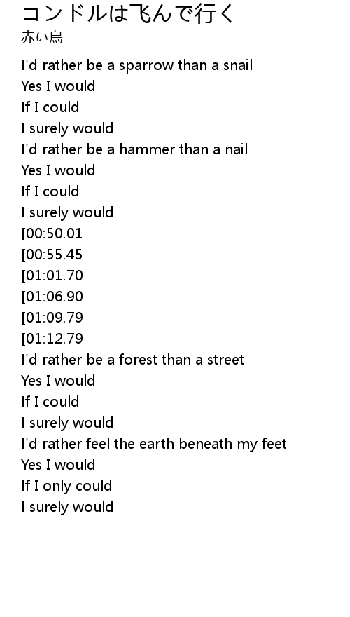 | [00:14.80] | I'd rather be a sparrow than a snail |