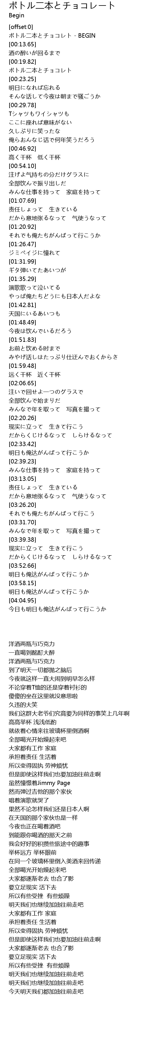| [00:01.36] | ボトル二本とチョコレト - BEGIN |