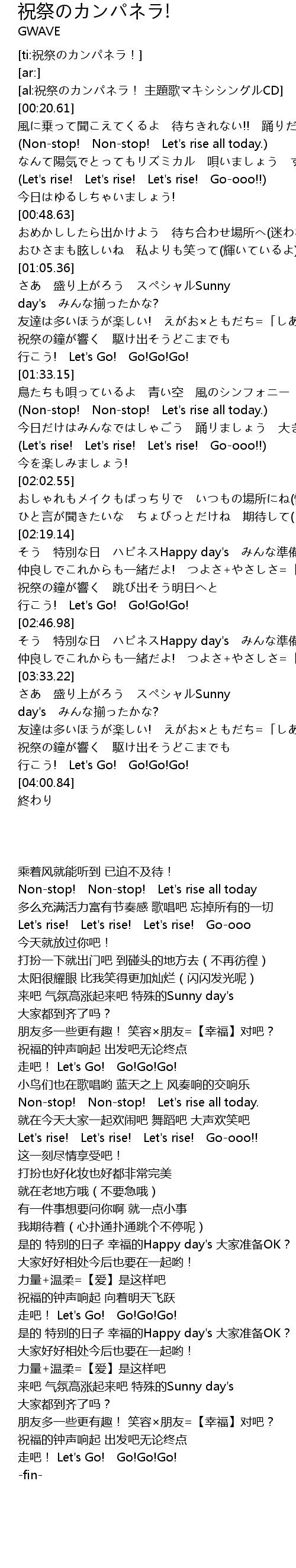 | [01:46.58] | (Non-stop! Non-stop! Let's rise all today.) |