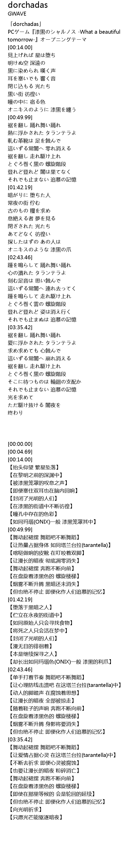 | [00:00.00] | 「dorchadas」 |