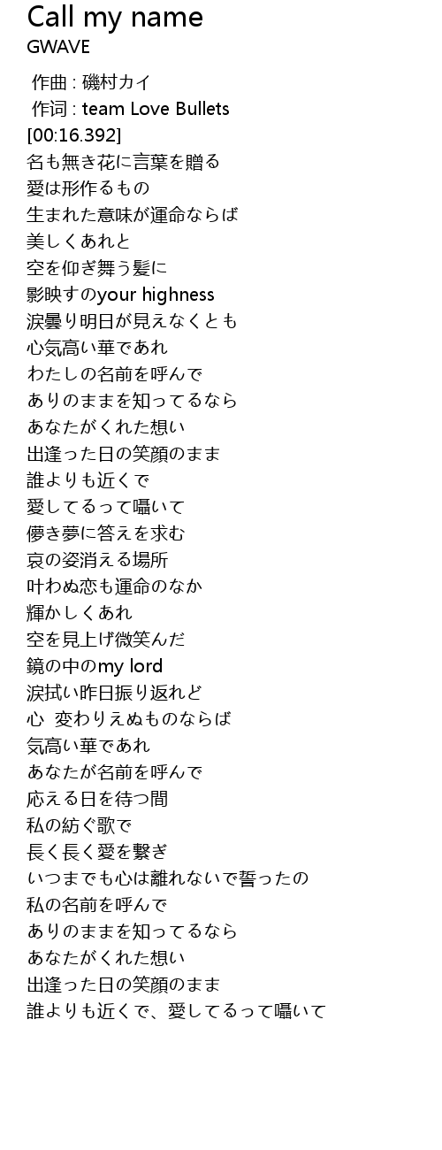 | [01:02.086] | わたしの名前を呼んで |